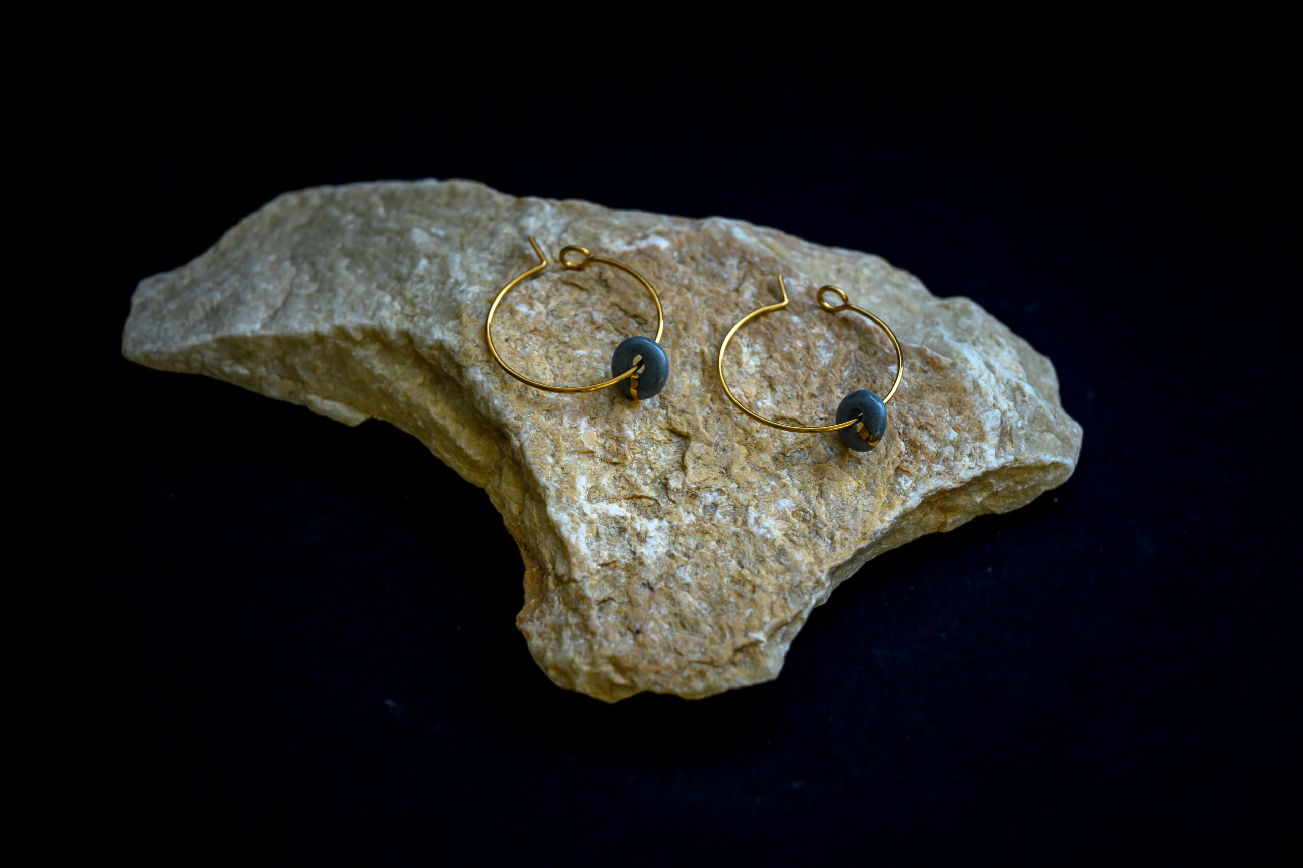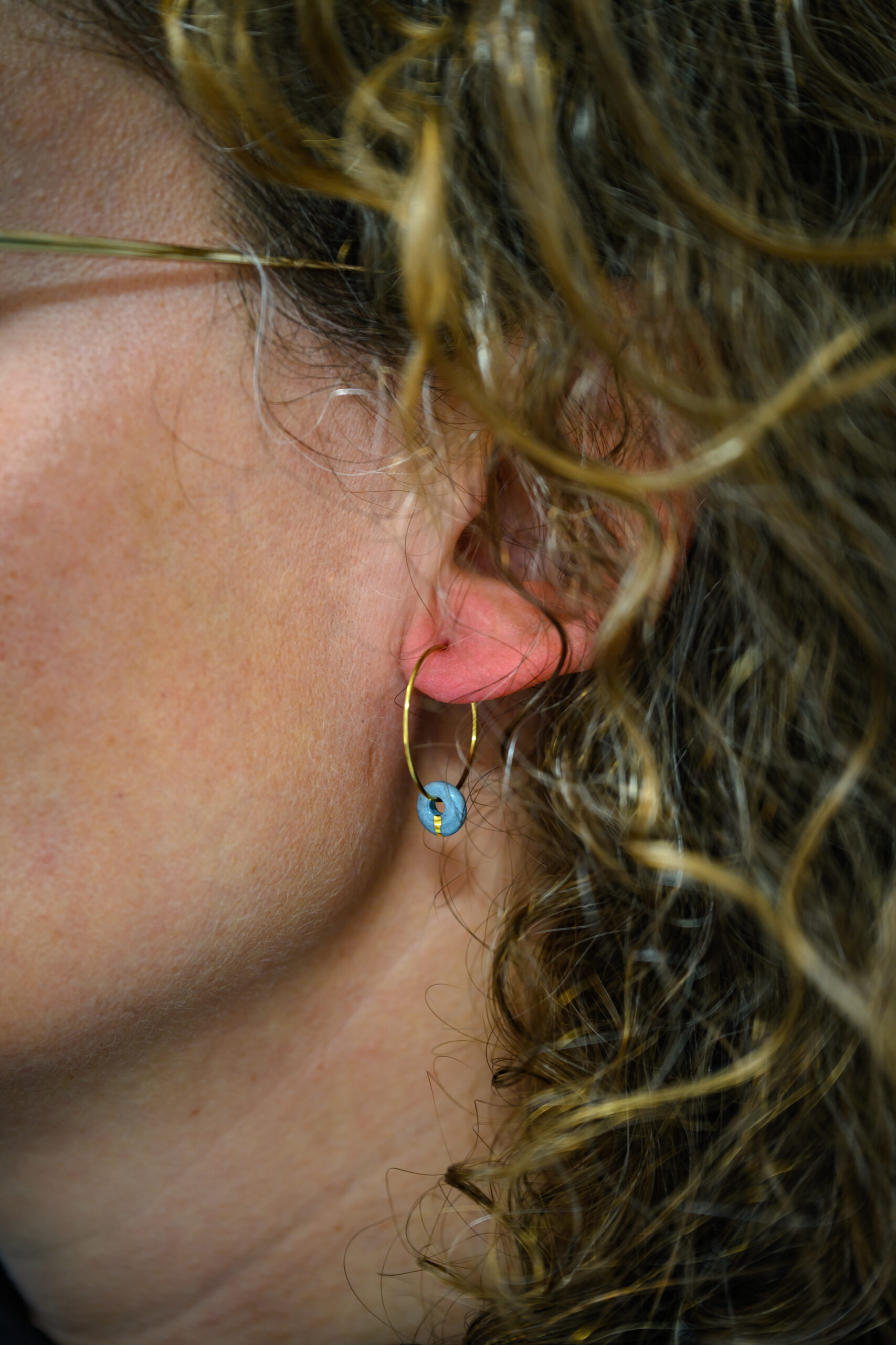 Chaque pièce est unique, ces boucles d’oreilles sont en porcelaine grise, elles sont accompagnées d’une fine ligne d’or. Ce qui permet de souligner la forme et d’avoir un résultat unique.