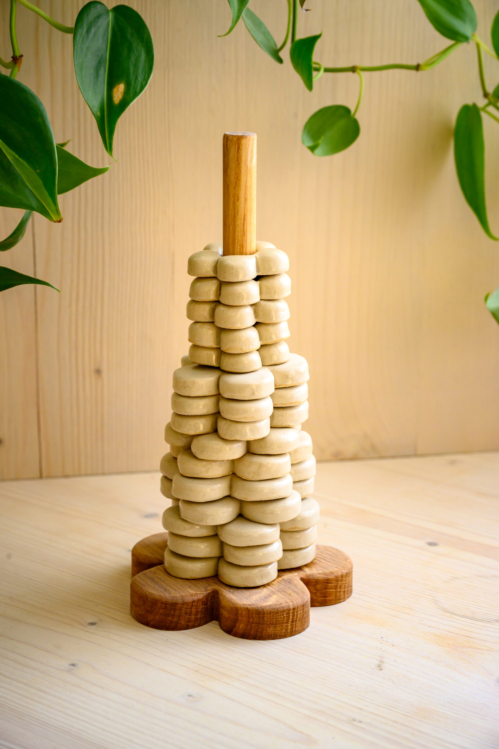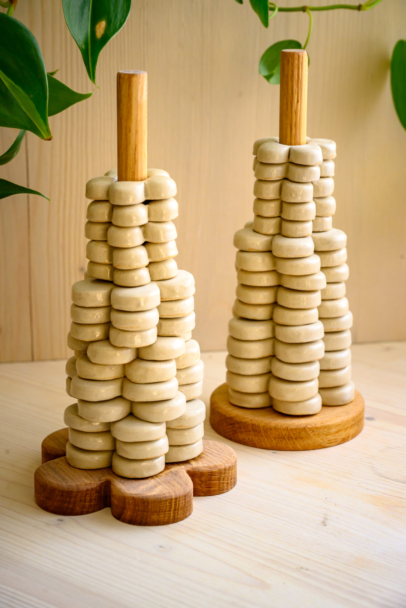 1 support en bois fleur ou rond pour les empiler joliment quand ils ne sont pas en mission saumure. Choisissez celui qui vous plait le plus!