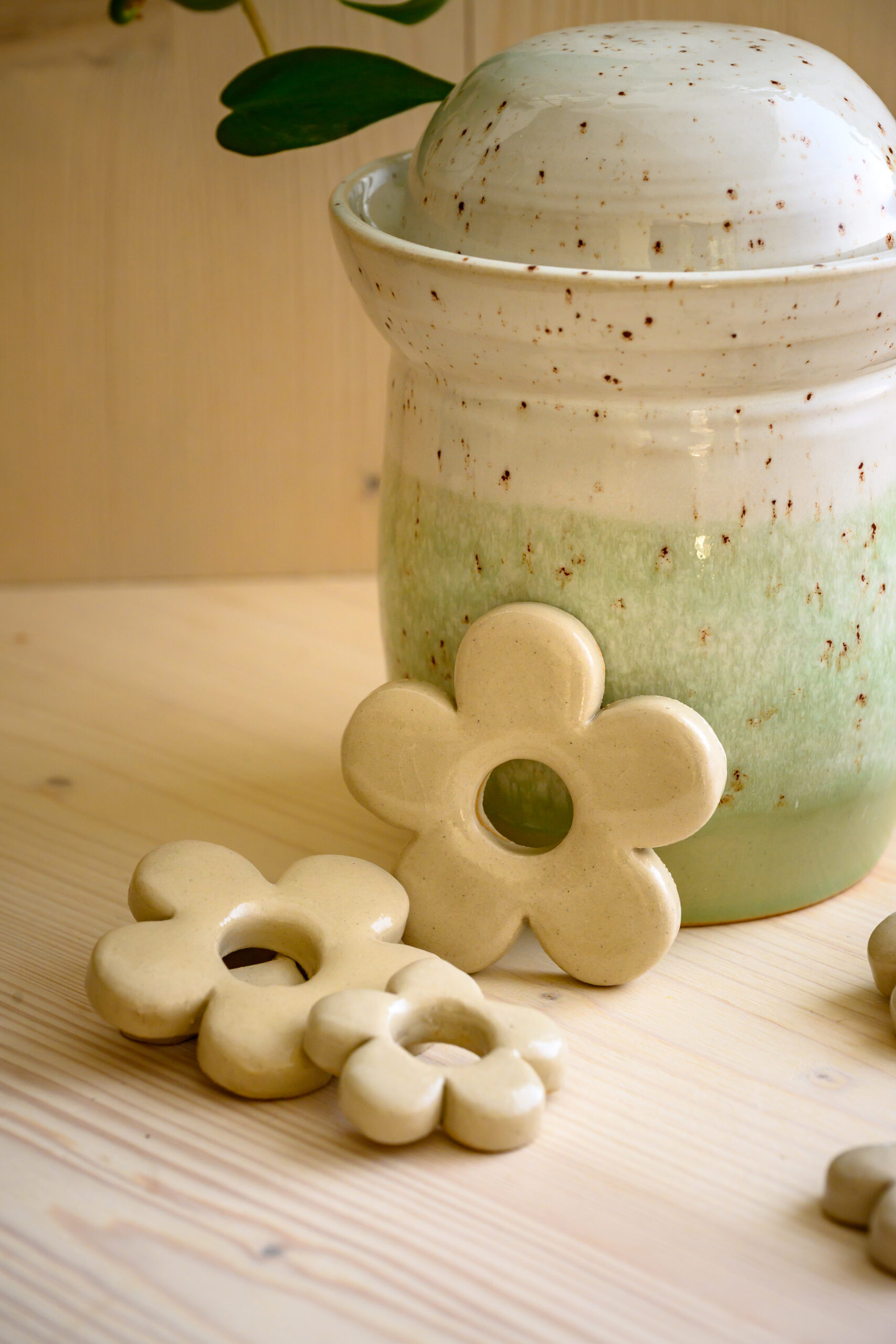 Fabriqués à la main, en grès brut non coloré, sans oxydes, et recouverts d’un simple émail transparent brillant. Faciles à nettoyer, durables, et surtout… trop mignons dans un bocal.