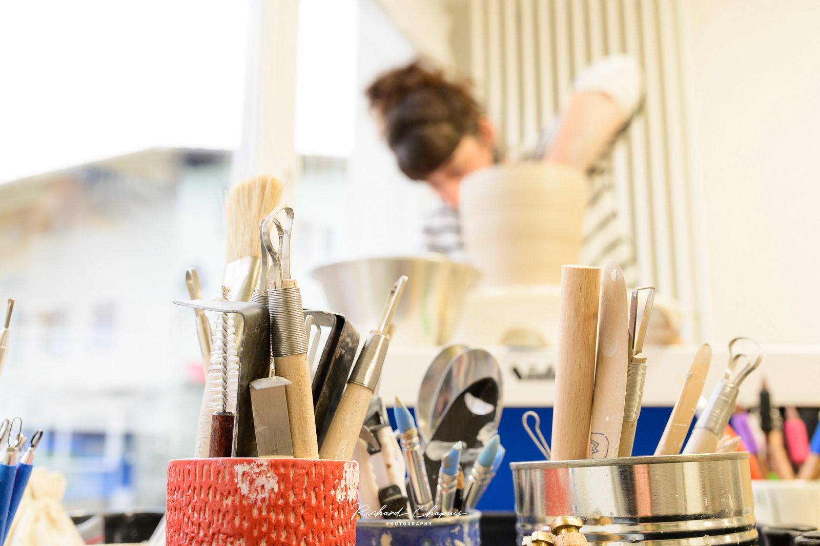 L’atelier est un espace lumineux et chaleureux, pensé comme un lieu convivial et hors du temps. On s’y sent rapidement à l’aise, invité à ralentir et à prendre le temps.