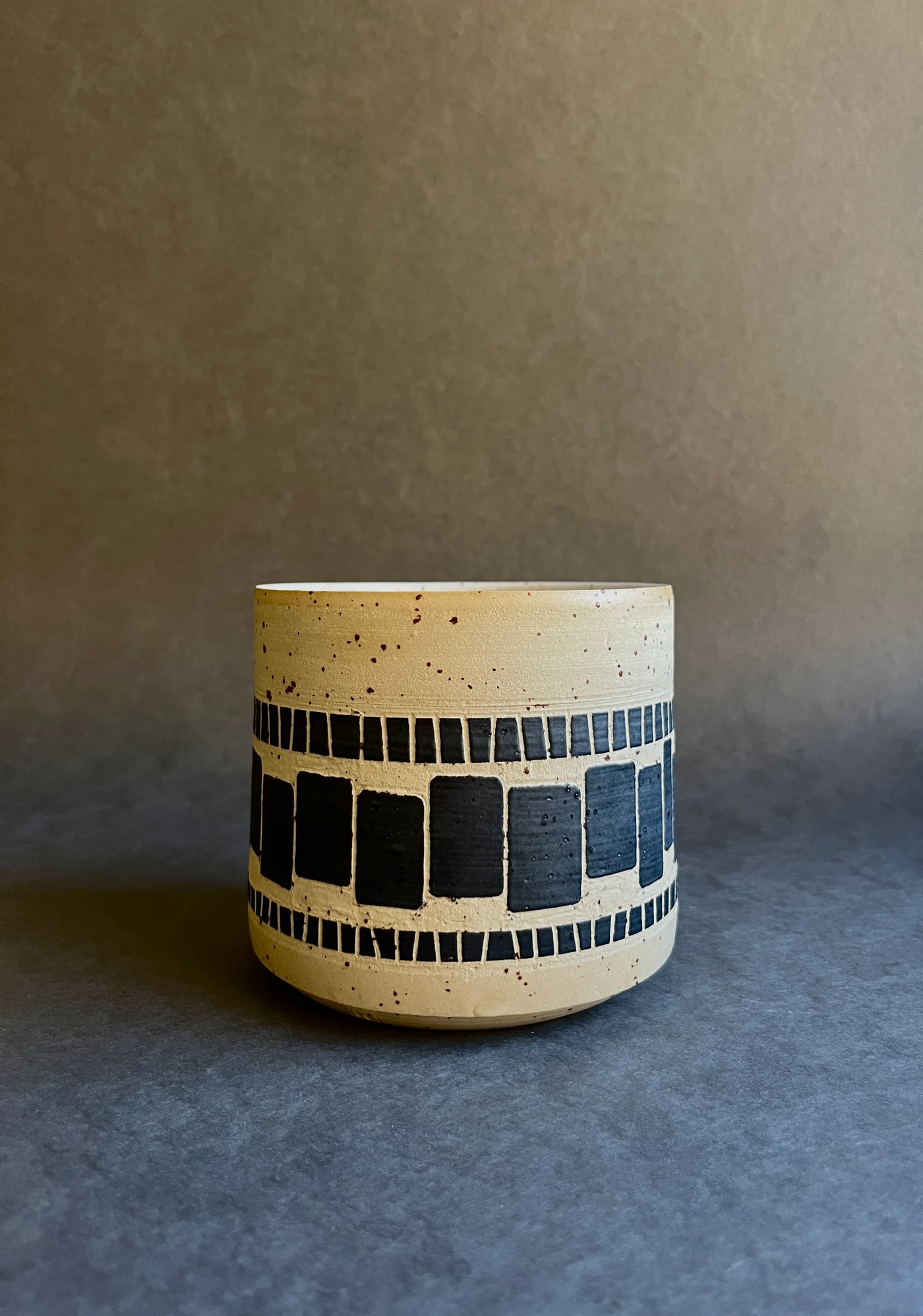 Pièce unique, réalisée avec un grès pyrité. Décor fait à la main, chaque pièce est donc originale.