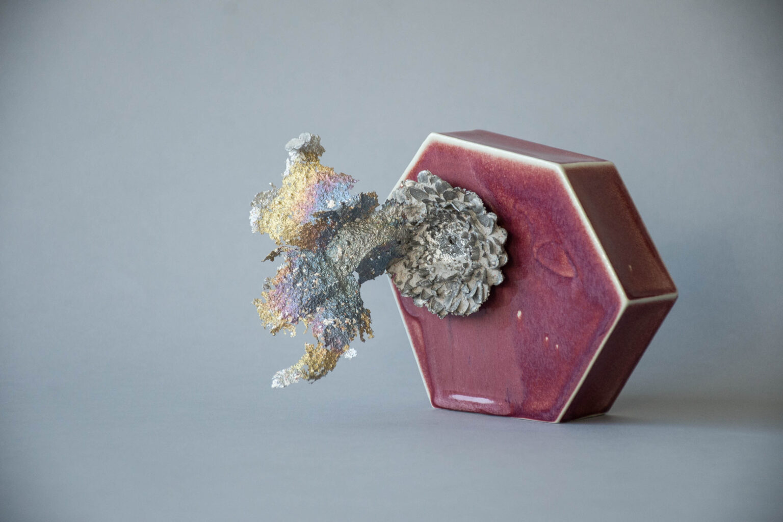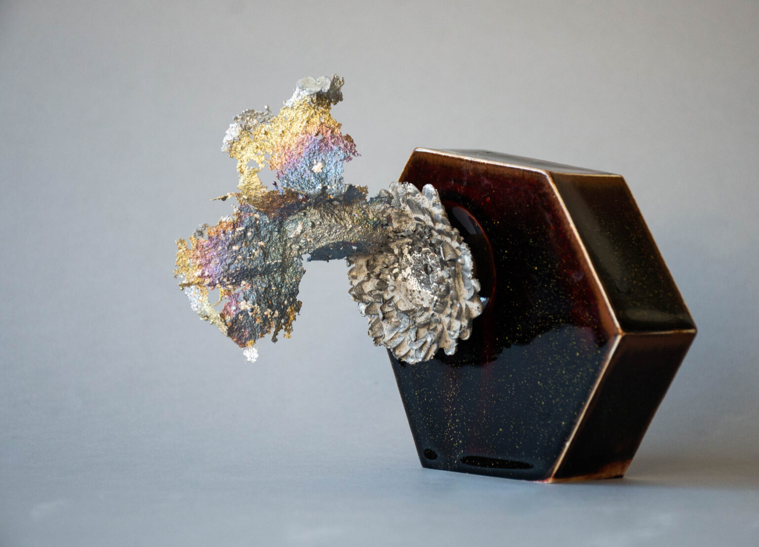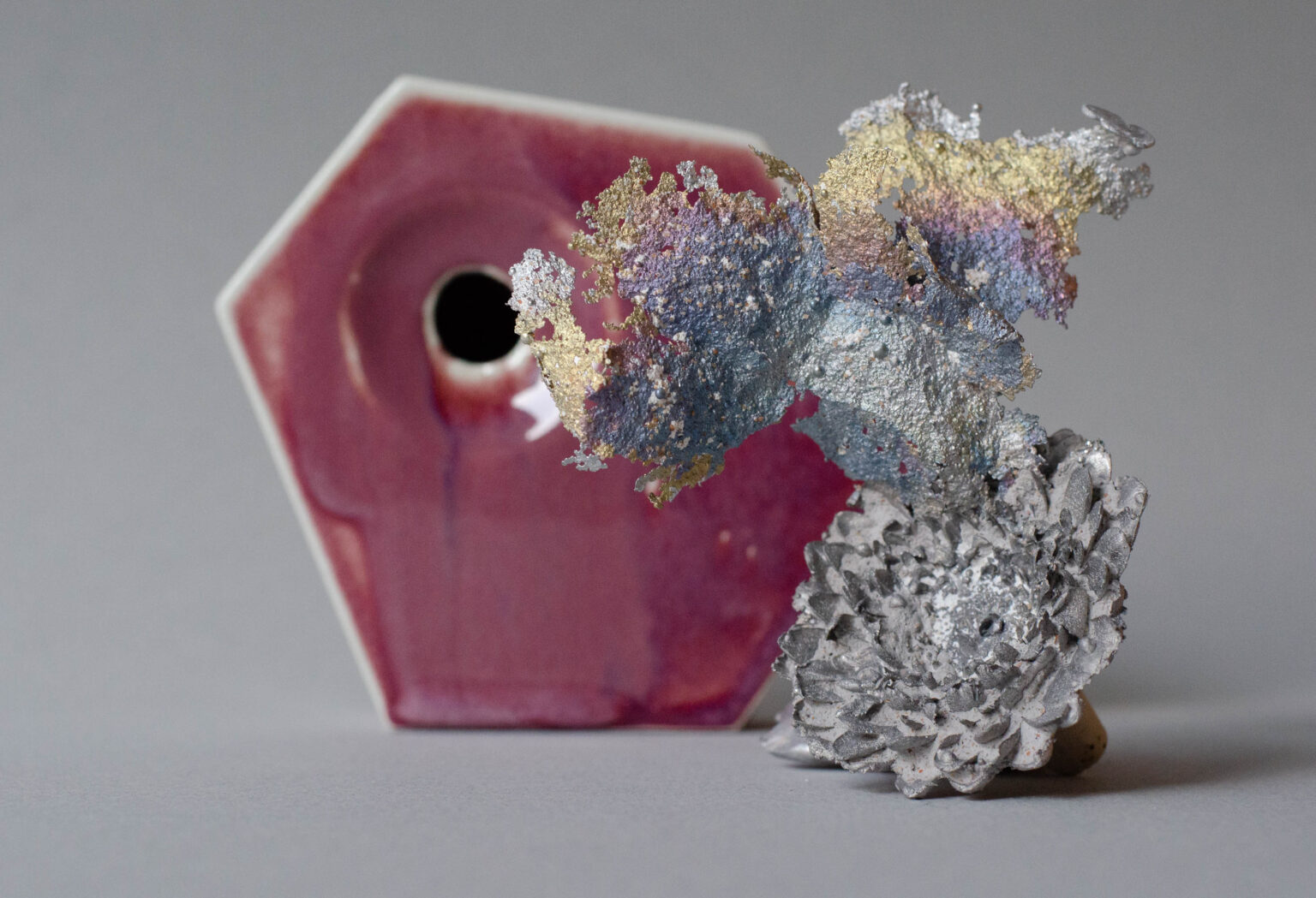 Pour les bouchons, j’ai expérimenté la fonte à partir de fleurs véritables, moulées puis coulées en moule perdu. J’ai travaillé avec différents métaux, notamment l’aluminium et l’étain. Chaque bouchon est façonné à la main, rendant chaque pièce unique.