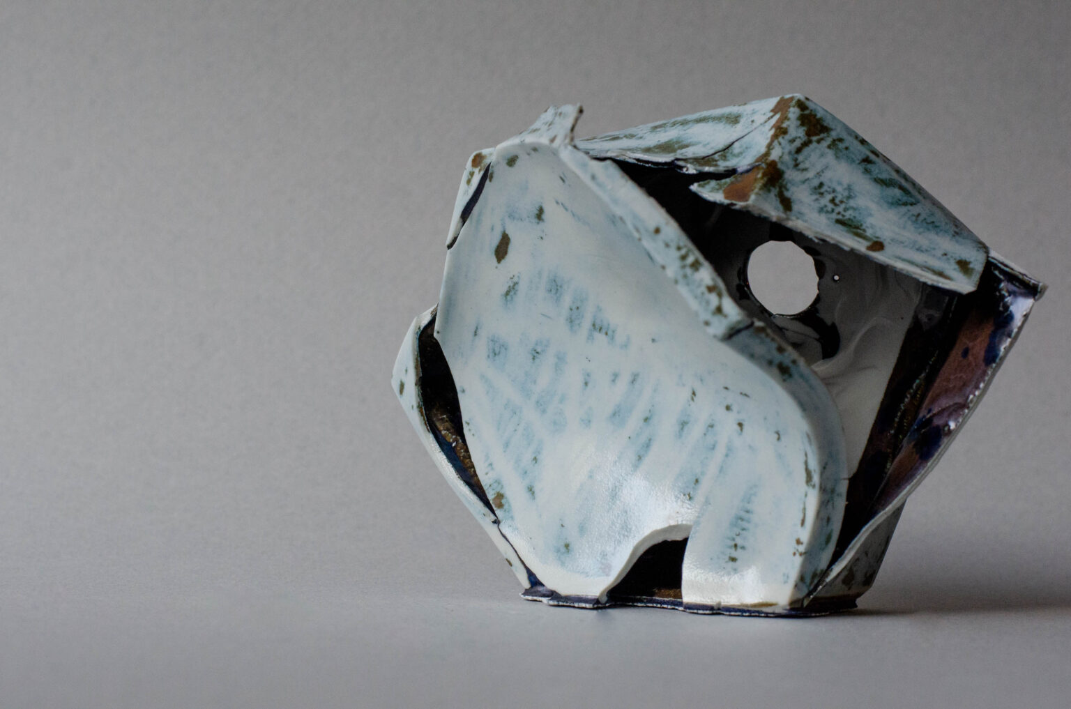 Lors de ma deuxième année de formation, j’ai réalisé Le flacon de parfum. L’ensemble a été conçu à partir de techniques de moulage, puis coulé en porcelaine. La forme du flacon s’inspire du livre 365 jours de Guillaume Bardet, qui a nourri ma réflexion autour de l’objet et de sa symbolique.